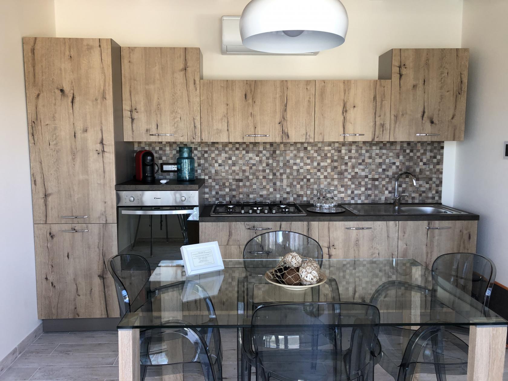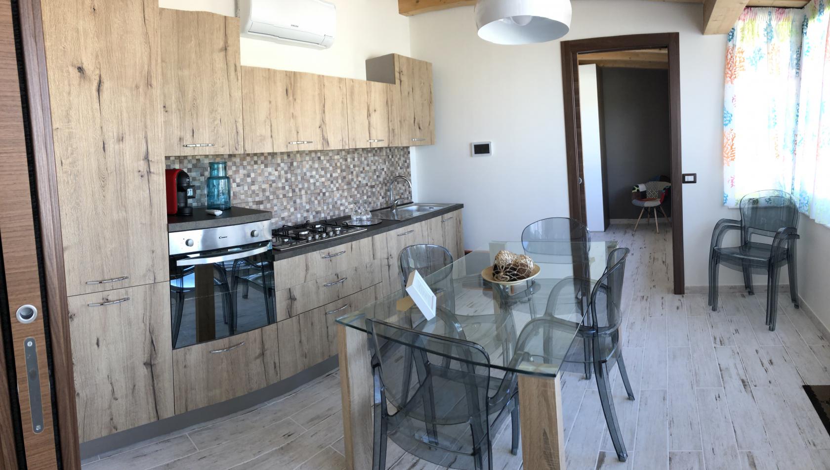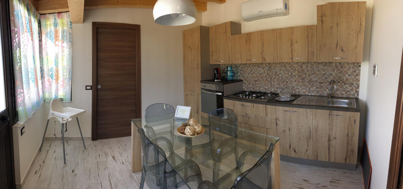 La cucina dispone di un forno, piano cottura 5 fuochi, frigo, congelatore, tostapane, bollitore,macchina del caffè , caffettiera, forno microonde. Le camere da letto sono ampie con grandi armandi. I bagni elegantemente arredati dispongono di ampie e comode docce.